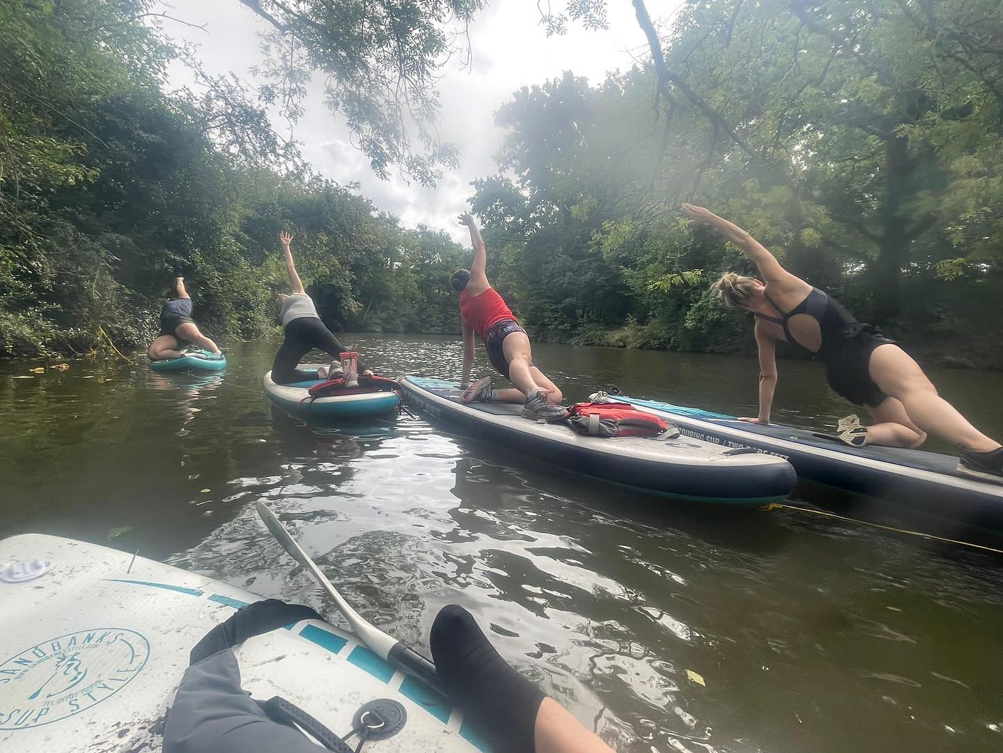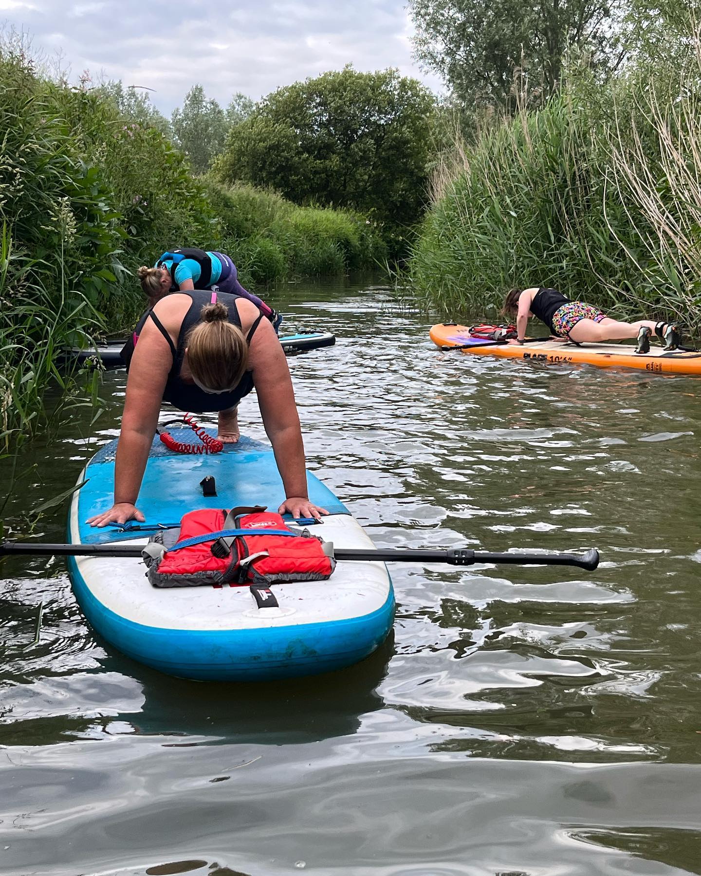 Sit ups, press ups and planks on a paddleboard are great ways to test and improve balance, core strength and endurance all while having fun on the water with a great bunch of people.
